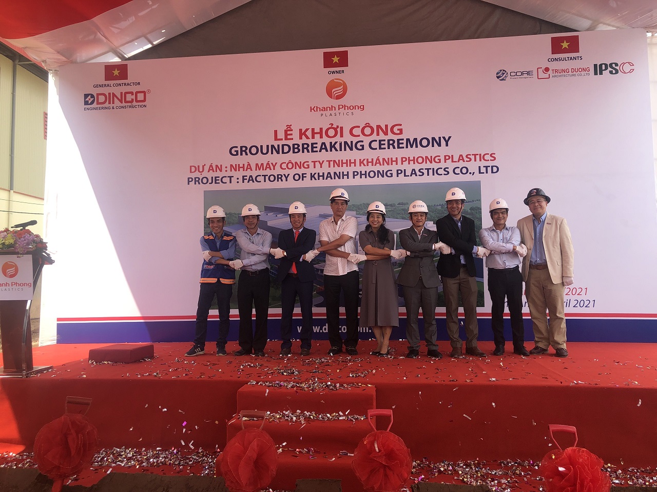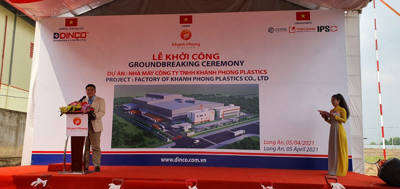 Sáng ngày 05/04/2021, Chủ đầu tư – Công ty TNHH Nhà máy Khánh Phong Plastics – cùng với nhà thầu DINCO và CORE đã tổ chức lễ khởi công dự án Nhà máy Nhựa Khánh Phong tại Lô R13-14-15, đường số 9, KCN Hải Sơn mở rộng (GĐ 3+4), xã Đức Hòa Hạ, huyện Đức Hòa, tỉnh Long An.